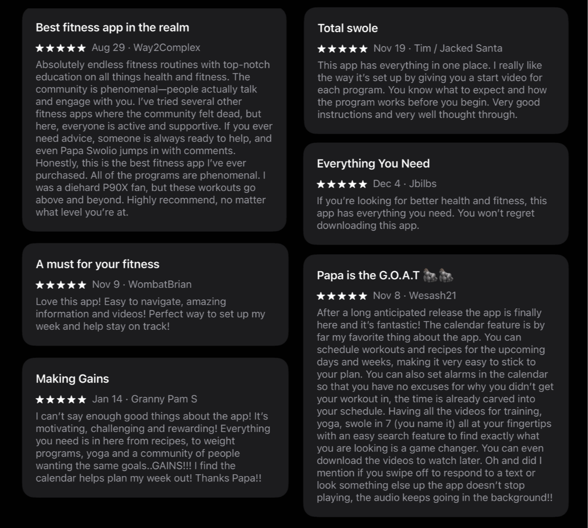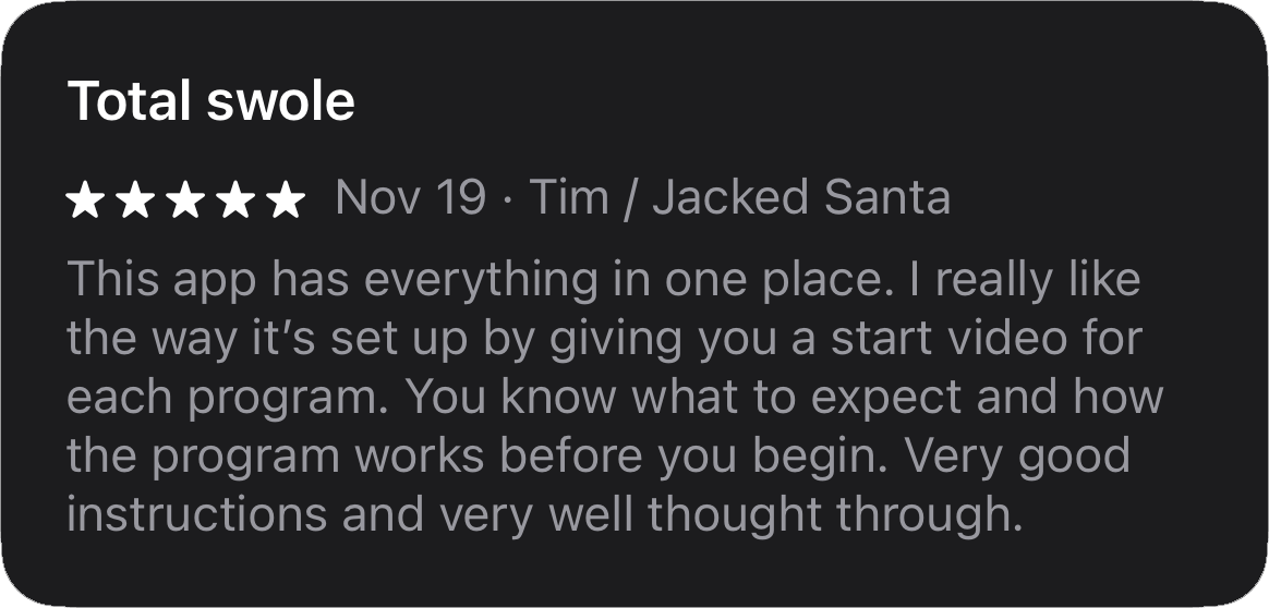 "The SwoleFam is consistency and support - doing something every single day that inches me closer to my goals has changed my entire life. Literally. Every aspect of my life has been improved."