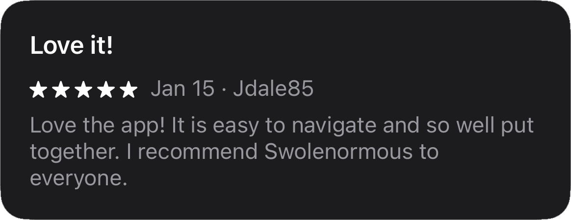 "The training and nutrition in Swolenormous X is amazing. It really should've been this simple all the way. There is no B.S. just the hard work the right way...THAT'S what people need."