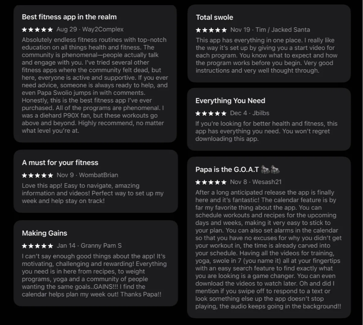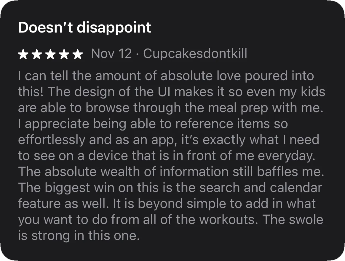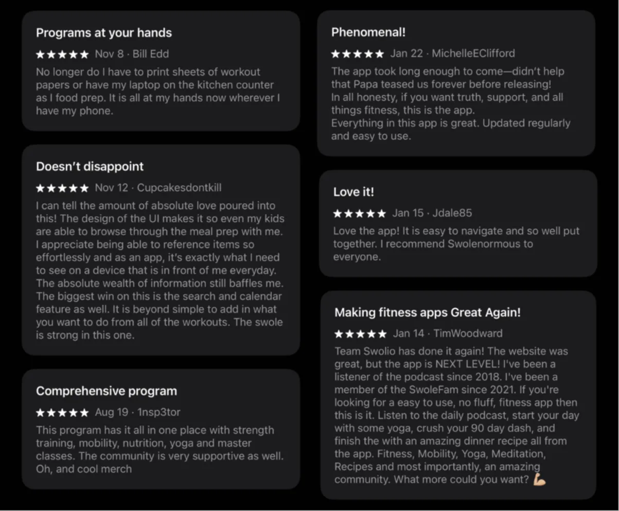 "The SwoleFam is consistency and support - doing something every single day that inches me closer to my goals has changed my entire life. Literally. Every aspect of my life has been improved."